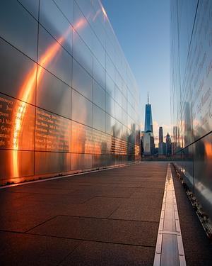 Sunrise lightning up the Empty Sky Memorial, Jersey City - New Jersey